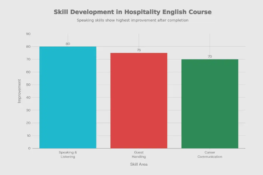 Skill improvement focus areas in the English for Hospitality Sector course at Svarna Training Institute.